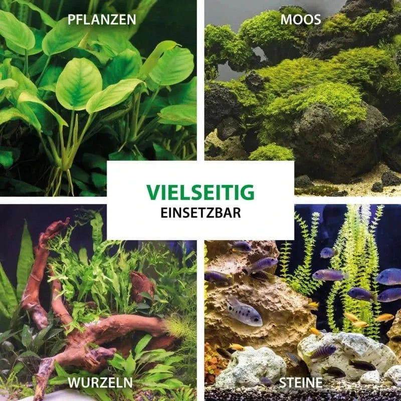 Ob Moose, Aufsitzerpflanzen oder Deko – dieser Kleber ist Ihr zuverlässiger Helfer beim Gestalten eines detailreichen Aquascapes. Er haftet sogar unter Wasser schnell und sicher und eignet sich hervorragend für die Befestigung auf Holz, Gestein oder anderen Materialien.