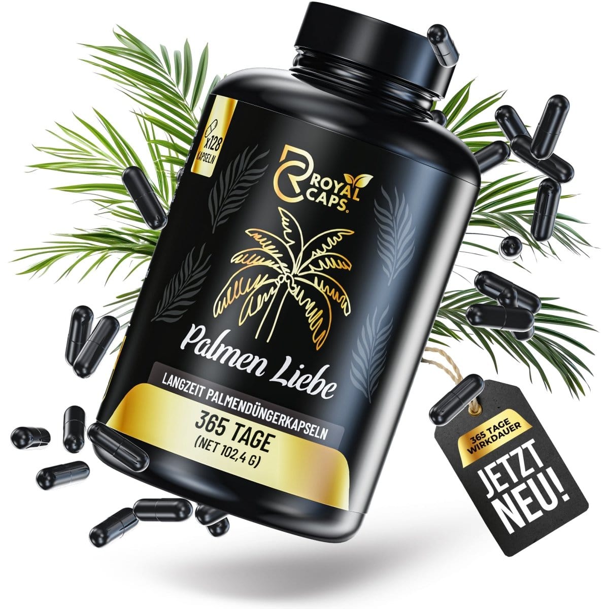 Mit Palmen Liebe von Royal Caps versorgen Sie Ihre Palmen ganzjährig mit allen essenziellen Nährstoffen – für volle 365 Tage, ohne ständiges Nachdüngen. Die rein pflanzlichen Düngerkapseln setzen die Nährstoffe langsam und bedarfsgerecht frei, exakt abgestimmt auf die Bedürfnisse tropischer und mediterraner Palmenarten.