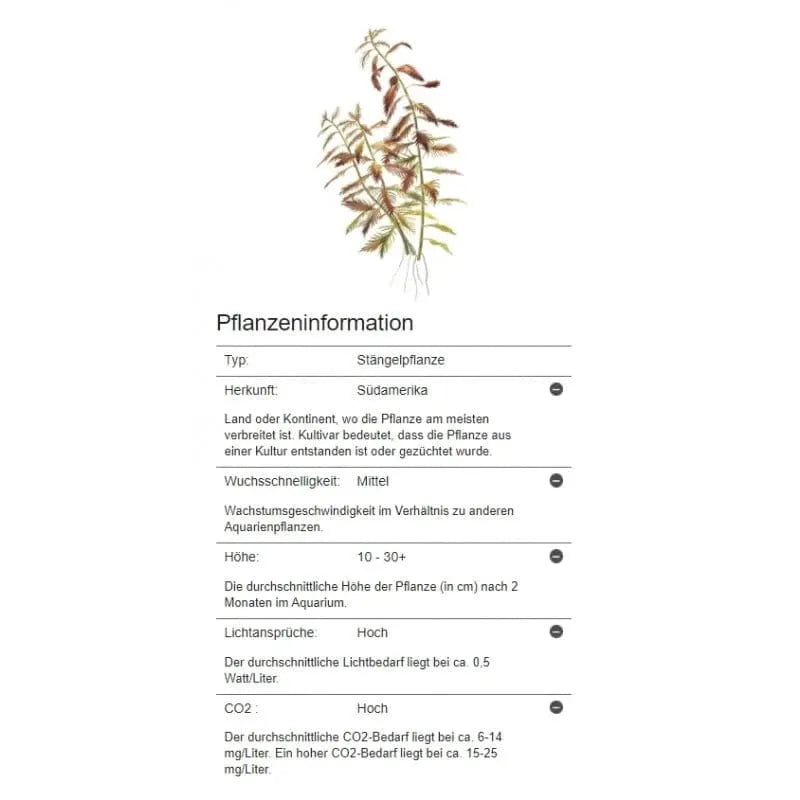 Die Proserpinaca palustris aus Kuba ist eine elegante und exklusive Pflanze, die rote sägeartige Blätter bildet. Unter guten Lichtverhältnissen entwickelt... Lesen Sie mehr