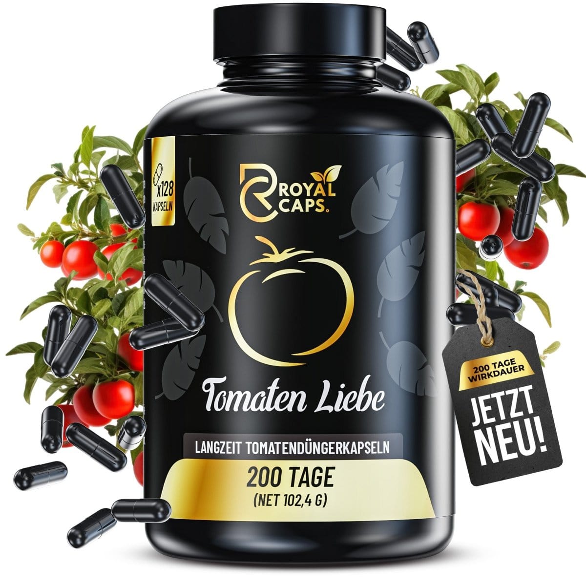 Mit Royal Caps – Tomaten Liebe versorgst du deine Tomatenpflanzen effizient und langfristig. Die innovativen Langzeitkapseln entfalten ihre Wirkung über bis zu 200 Tage – ganz ohne wöchentliches Nachdüngen. Tomaten Liebe ist 100 % pflanzlich und organisch, abgestimmt auf die Bedürfnisse von Fruchtgemüse wie Tomaten, Paprika oder Chili. Die Anwendung ist so einfach wie genial: Kapsel einsetzen, gießen, wachsen lassen.